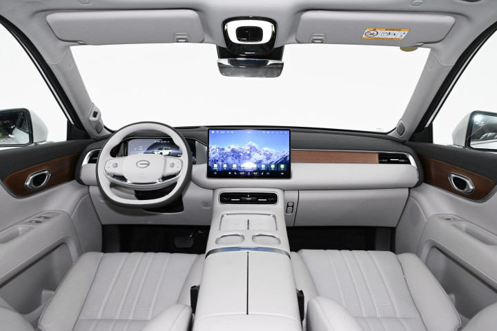 开上传祺向往S9乾崑,首先感觉到的是它的车身尺寸和重量带来的扎实感。作为一款超过5米长的大型SUV,5060毫米的车长以及1950毫米的宽度让它在道路上的存在感非常强烈,开起来也有种沉稳的气场。尽管车身不小,但方向盘转向手感调教得不错,带有一定的韧性和精准度,操控不会感觉笨重。开车在市区穿梭时,低速转向依旧轻盈,停车倒车也不算费力,配合全景影像和360度雷达辅助,停车变得相当轻松。高速行驶时方向盘回馈更清晰,车辆操控稳定,给人一种很安心的感觉。